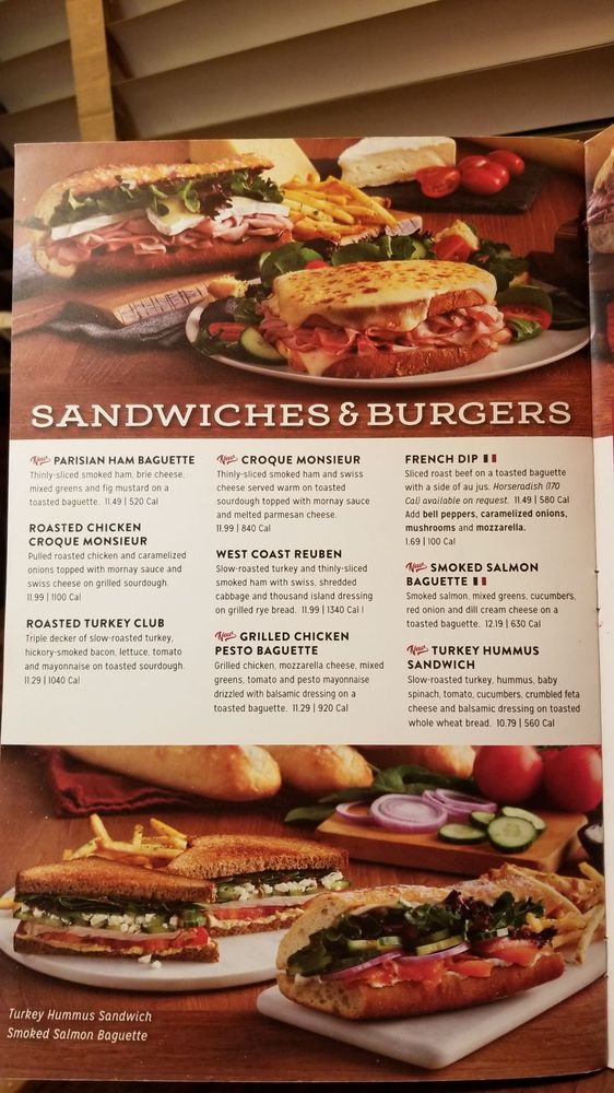 Slow-roasted turkey, bacon, mozzarella, avocado, tomato, baby greens, with balsamic dressing and basil pesto mayo on grilled ciabatta bread. (1030 Cal)