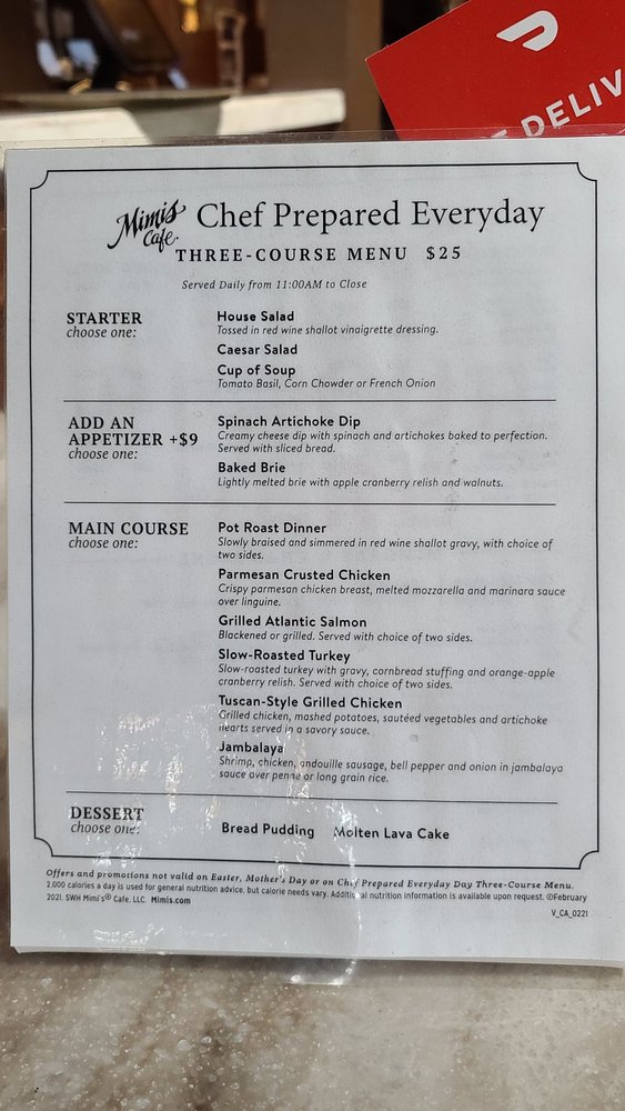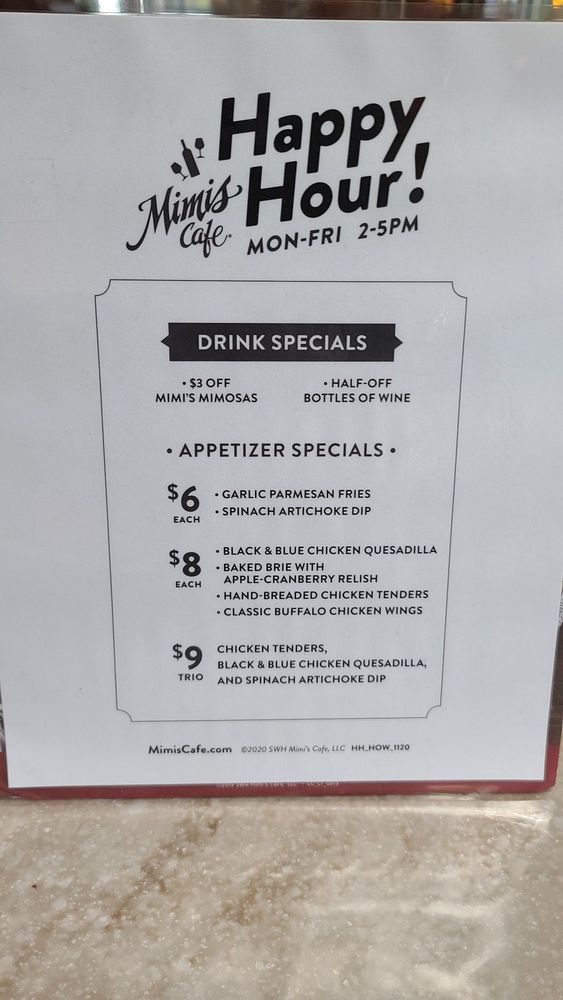 Mimi's Cafe in Torrance, CA offers a charming French-American breakfast and brunch experience with a touch of Southern comfort. The menu features delicious options like the Mimi's Pancake Sampler, Breakfast Garden Quiche, and Spinach Artichoke Omelet. The Mimosa flight and Le Grand Dishes like Pain Perdu with Mixed Berries and Brioche French Toast are also worth trying. Customers rave about the cozy ambiance, attentive service, and diverse menu choices. The restaurant provides vegan and vegetarian options, takes reservations, offers catering, and has happy hour specials. With a mix of classic and innovative dishes, Mimi's Cafe provides a delightful dining experience for any occasion.